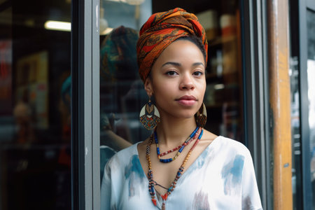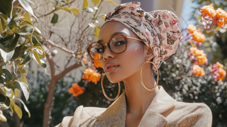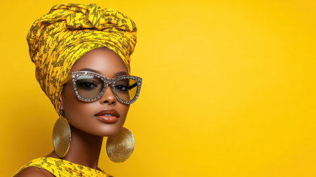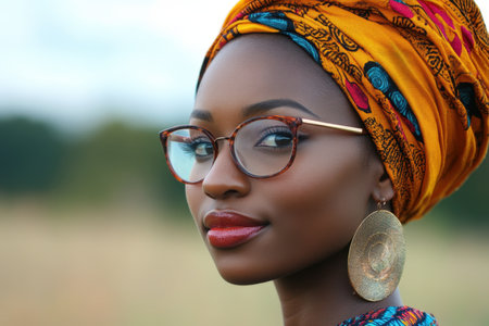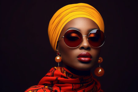 Portrait of a beautiful African American woman wearing a turban and glasses