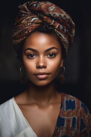African woman studio photo. Cute serious girl face at shot. Generate Ai