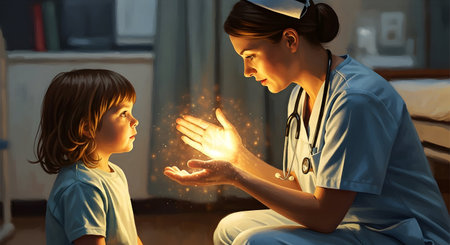Shambhala Therapist Holding Hands Over Chest of the Patient, Transferring Energy