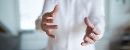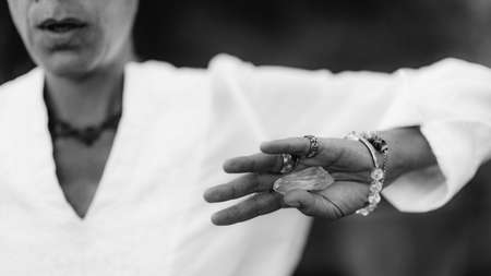 Back-to-self emotional healing concept. Hands of a spiritual teacher during the back-to-self emotional healing session.