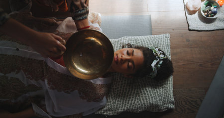 Tibetan Meditation And Relaxation Therapy. Traditional Healing Bowl Care