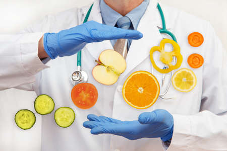 Healthy food and natural nutrition medical diet concept, hands doctor with vegetables