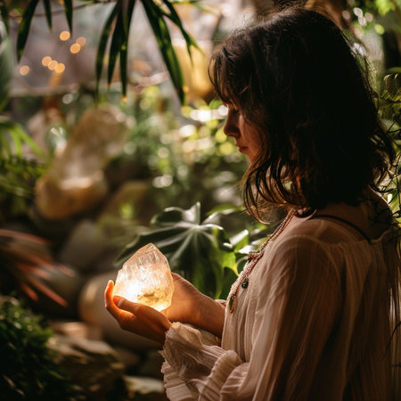 Woman feeling the light projected on her face, exploring spirituality and psychedelic visions