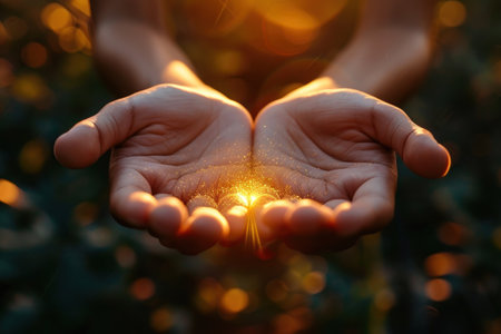 Golden Light in Open Hand, Hope, Faith, Spirituality, Religion, Inspiration, Support Concept