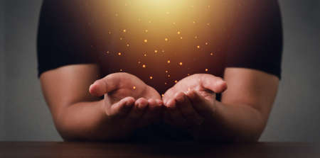 Human hand and magical glowing light