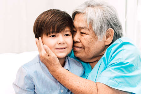 Portrait of happy elderly woman with little grandson smiling.relax family love people concept