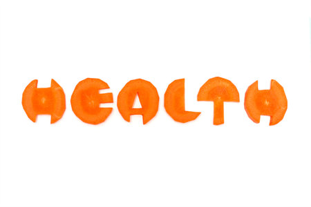 The word health laid out from almonds on a white background. Healthy food, healthy lifestyle. High quality photo.