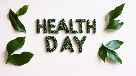 Health Day celebration with green leaves arranged on light background