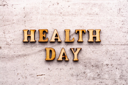 Inscription HEALTH DAY in wooden letters on a light background.