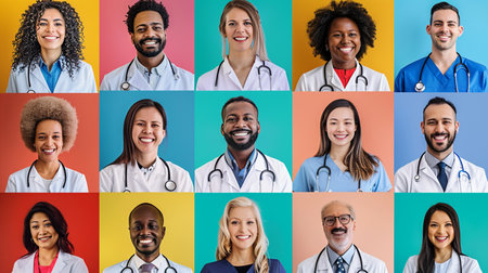 Diverse Group of Healthcare Professionals in a Vibrant Collage Celebrating Community and Unity