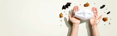 Facial masks with Halloween objects - flat lay