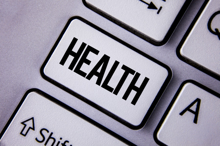 Handwriting text Health. Concept meaning State of being free from Illness Injuries Mental Physical condition written the White Keyboard Key with copy space. Top view.
