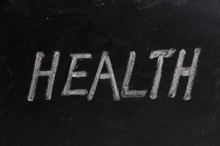 Single word health is written on blackboard.
