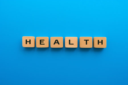 A compelling visual ideal for wellness publications, healthcare blogs, or educational materials on healthy living | This image features the word HEALTH spelled out in evenly spaced, uppercase letters on wooden blocks against a vibrant blue backdrop. The simplicity of the composition conveys a strong message of clarity and straightforwardness, which is essential in discussing health and wellbeing. Each wooden block's natural grain texture adds an element of organic beauty, juxtaposing the artificiality often associated with healthcare industries. The choice of a bold, uncluttered blue background creates a serene and clean environment that is symbolic of the peace and calmness associated with good health. The top-down lighting casts subtle shadows beneath the letters, enhancing readability and giving a three-dimensional feel to the blocks, thus accentuating the tangibility of health as an attainable goal | Excellent for use in motivational and informational contexts, this image can guide discussions on preventive medicine, promote healthy lifestyle choices, or adorn the walls of medical facilities or wellness centers. It serves as a powerful reminder of health's foundational role in life and can be utilized in advertising for health supplements, fitness programs, and insurance policies, invoking a sense of responsibility towards one's health | a polished and direct depiction of the word HEALTH using wooden letter blocks, set against a calming blue background, providing clear space for text overlays or additional graphics