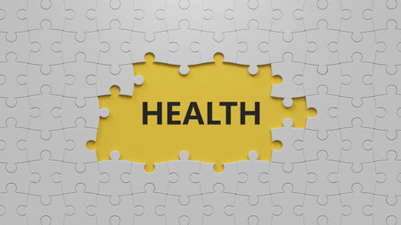 HEALTH - medical concept. The white puzzle pieces with missing pieces.3D rendering on yellow background.