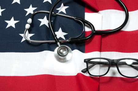 Stethoscope on US flag. American national flag