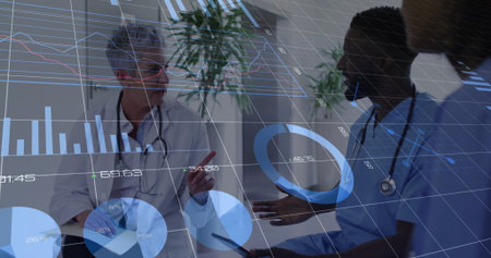 Image of data processing over diverse doctors. Global medicine, computing and digital interface concept digitally generated image.