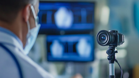 A healthcare provider utilizes a webcam and microphone for remote consultations, enhancing patient communication and access to medical services through technology.