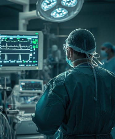 Dedicated and Highly Skilled Doctor Performing Critical Surgery in Sterile Hospital Environment with Advanced Medical Equipment and Technology