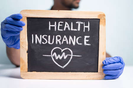 Unrecognized doctor showing or recommending health insurance sign board - concept of healthcare and medical safety insurance as emergency financial protection