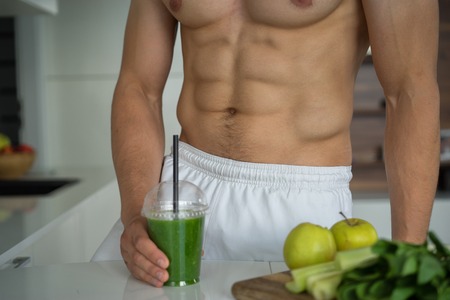 Athletic man holding a green smoothie