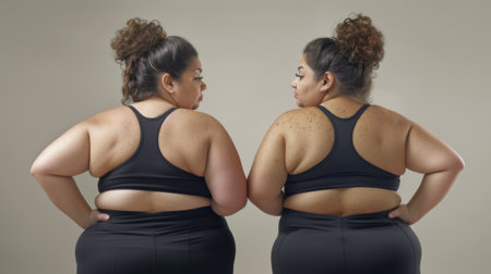 Two women in black sports bras standing side by side, AI