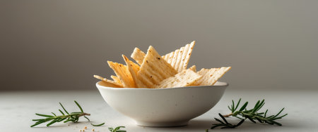 AI Generated. Rosemary Flavored Rice Wafers Snack Chips Vegetarian Healthy Aromatic Diet