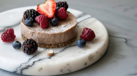 Raw vegan cheesecake with berries. Healthy sweet food concept