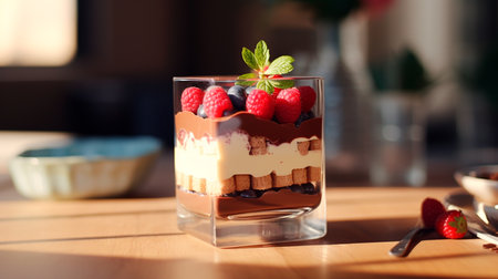 AI Generated. Chocolate Mousse with Berries in Elegant Glass
