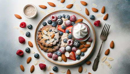 Cakes without sugar. Dietary foods. View from the top. Healthy concept, generative AI