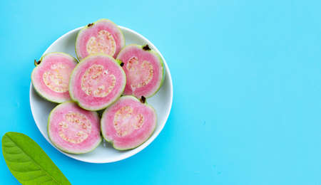 Fresh Guava fruit with leaf on color background, Tropical high vitamin C fruit