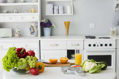 Fresh vegetables in the kitchen at home. Healthy eating and dieting concept.