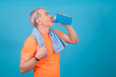adult or senior man with sportswear isolated on color background