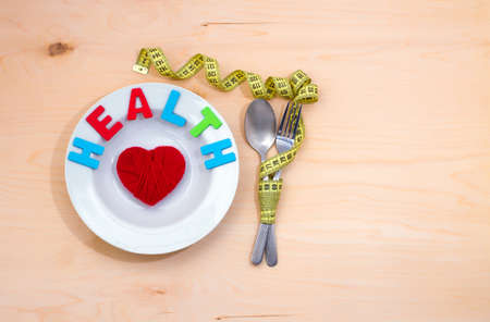 Health word on the plate. A low-calorie diet for weight loss