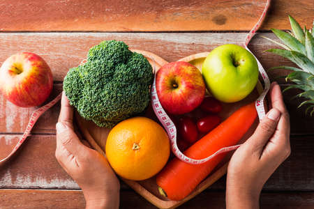 Foods that contain vegetables and fruits are good for your health. Weight loss and diet concept