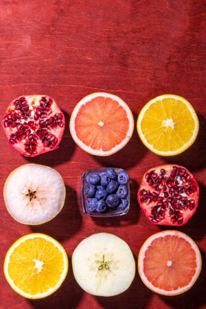 Background of fresh sliced ​​fruit on a table in the afternoon.