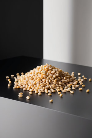 AI Generated. Buckwheat groats piled on a white surface
