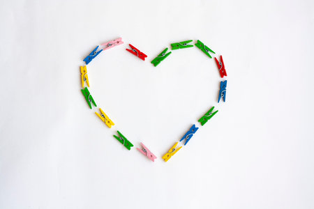 Heart of colorful clothespins on a white background