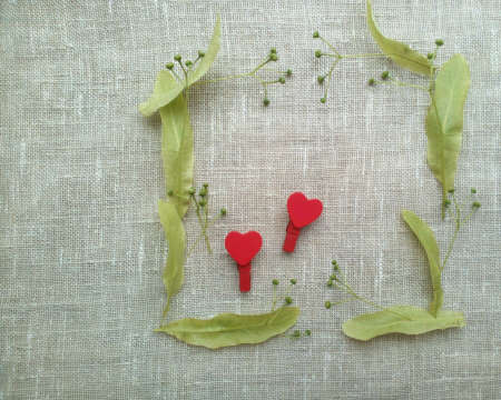 Green frame red hearts natural