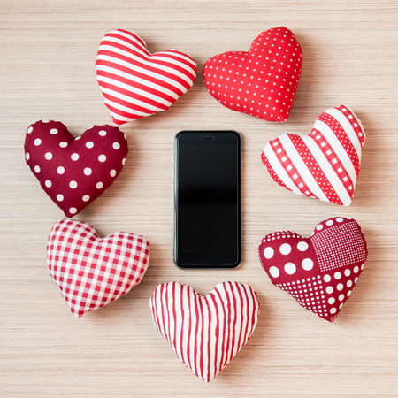 Mobile phone with red heart shape Valentine's Day Messaging Concepts