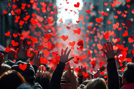 Energetic Burst Of Heart Confetti: Joyous Love Celebration