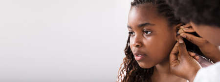 Deaf Child With Hearing Disability Getting Hear Aid From Doctor