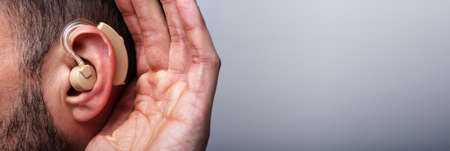 Hearing Aid. Man Listening. Ear Damage And Audiology