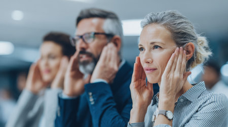 Woman held hand to ear and listened attentively.