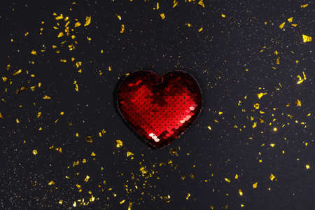 close-up of a wounded heart on with bandage on dark background.. Feelings of love, pain, sorrow. Relationship concept.