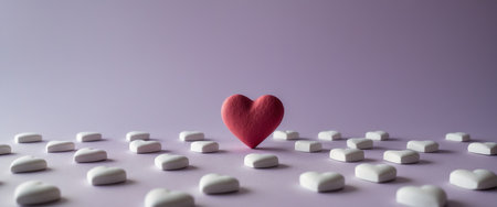 AI Generated. Red Heart Among White Hearts on Lavender Background