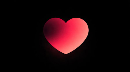 A vibrant red heart shape glows against a stark black background. The image presents a soft, gradient effect, with the color transitioning from deep red to a lighter shade. The composition is simple, emphasizing the heart's form. This visual could be used in various commercial projects to convey messages of love, romance, or care.