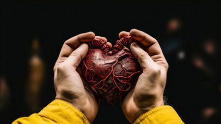 Man Holding Heart Symbolizes Cardiovascular Health And Disease Prevention. Concept Heart Healthy Eating, Exercise For Heart Health, Managing Blood Pressure, Understanding Cholesterol Levels.