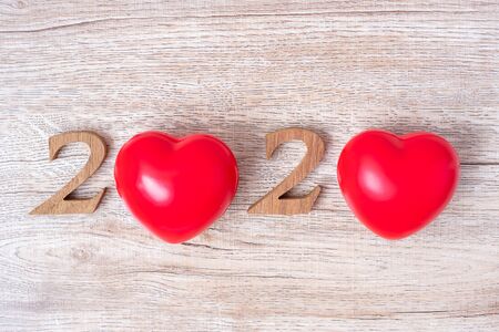 2020 wooden number with red stethoscope. Happy New Year for heart health and medical concept, life insurance business
