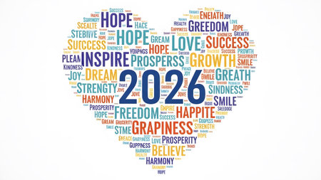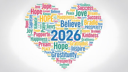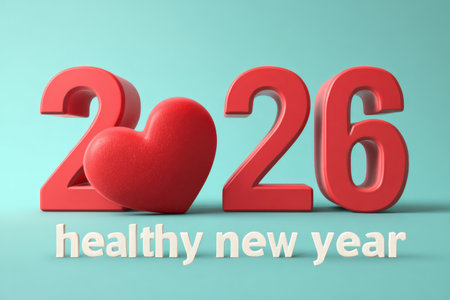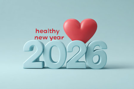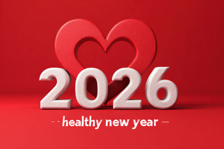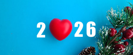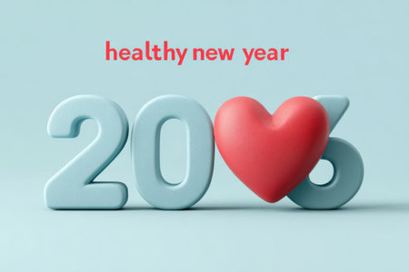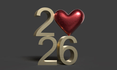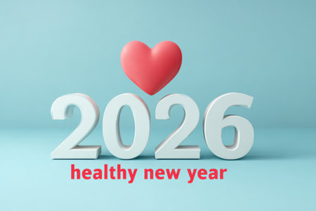A vibrant display featuring the year 2026 and a heart symbol emphasizes a joyful and healthy start to the new year, perfect for Christmas and holiday celebrations